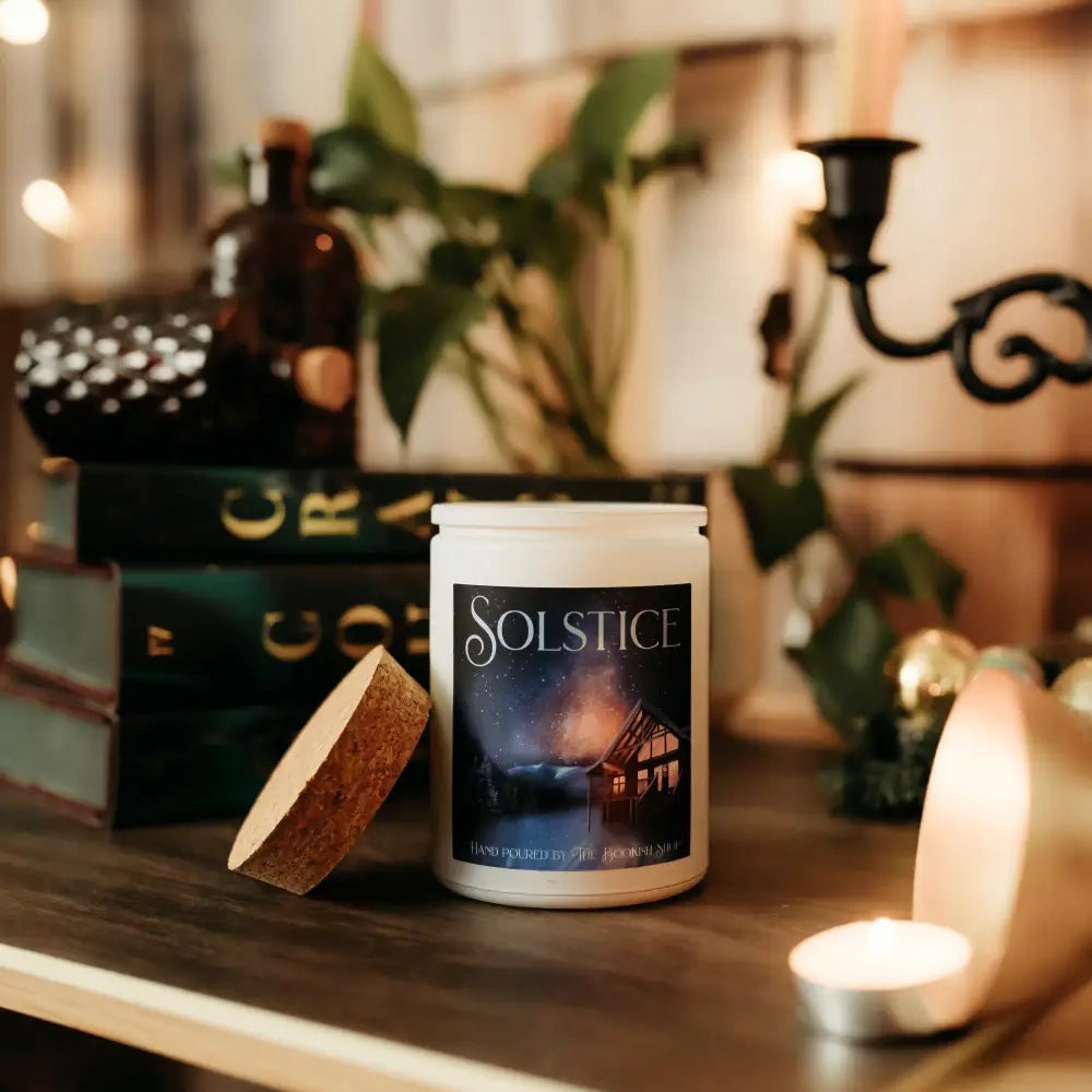 This Bookish Shop exclusive candle is made with soy wax, and a wood wick (hear the crackle!) and is hand-poured with love! Our 6oz & 12oz candles come in clear/frosted, white, taupe/brown, vintage green/red, cobalt blue, storm gray, or black glass containers. Cork lid included. Kindly note, that jar color requests are unable to be upheld and the color will depend on our suppliers' stock.
