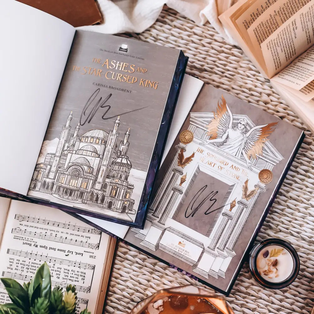 In collaboration with Carissa Broadbent, The Bookish Box is thrilled to announce the continuation of the Crowns of Nyaxia series with our Exclusive Luxe Edition Set of The Ashes & the Star-Cursed King and The Songbird & the Heart of Stone!