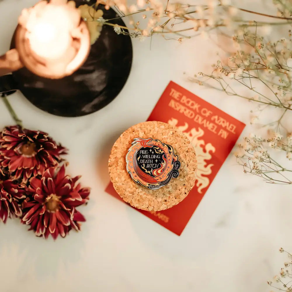 Can you handle the heat? For the fierce, fearless, and the bold... wear this pin like a badge of honor! Inspired by The Book of Azrael by Amber V. Nicole. Designed by @azura.arts.